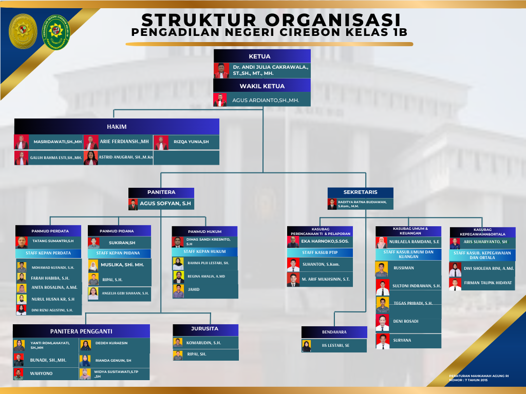 - Melakukan pengawasan secara rutin terhadap pelaksanaan tugas dan memberi petunjuk serta bimbingan yang diperlukan baik bagi para Hakim maupun seluruh karyawan;