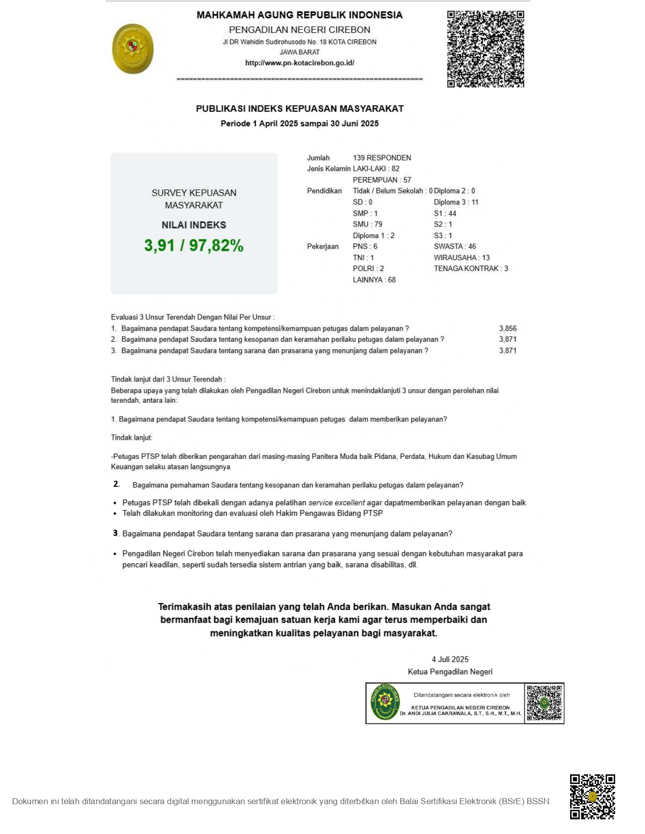 Laporan Monitoring dan Evaluasi Indeks Kepuasan Masyarakat (IKM) Triwulan II Tahun 2024 Pengadilan Negeri Cirebon Kelas 1B, Klik e-Doc